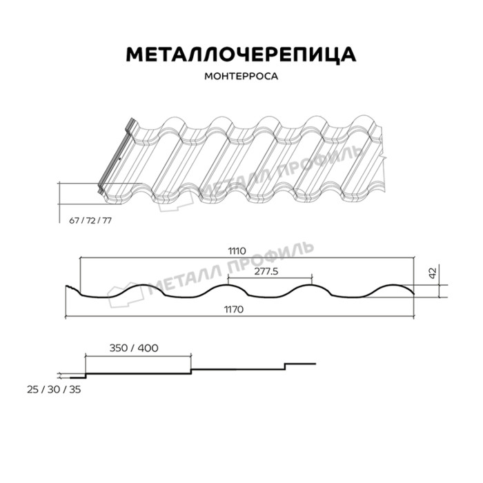 Металлочерепица Металл-Профиль Монтерроса-X 0,5 NormanMP RAL 1015 Светлая слоновая кость